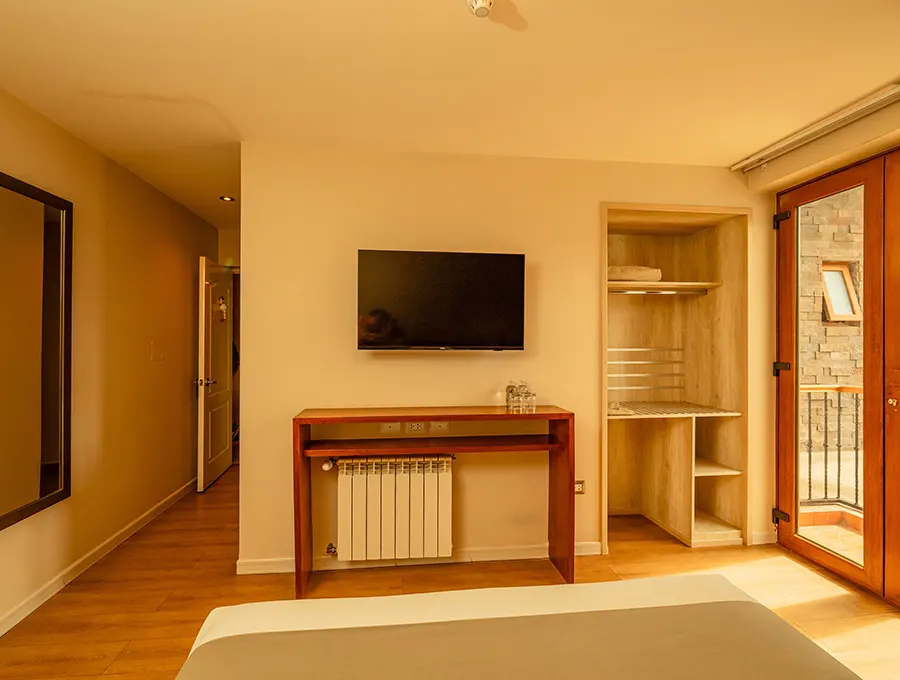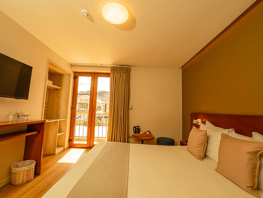 It also has Cable TV in the room; excellent Wi-Fi signal coverage inside the room and throughout our hotel in Cusco, a closet to keep your belongings well organized, bedside tables and garden views.